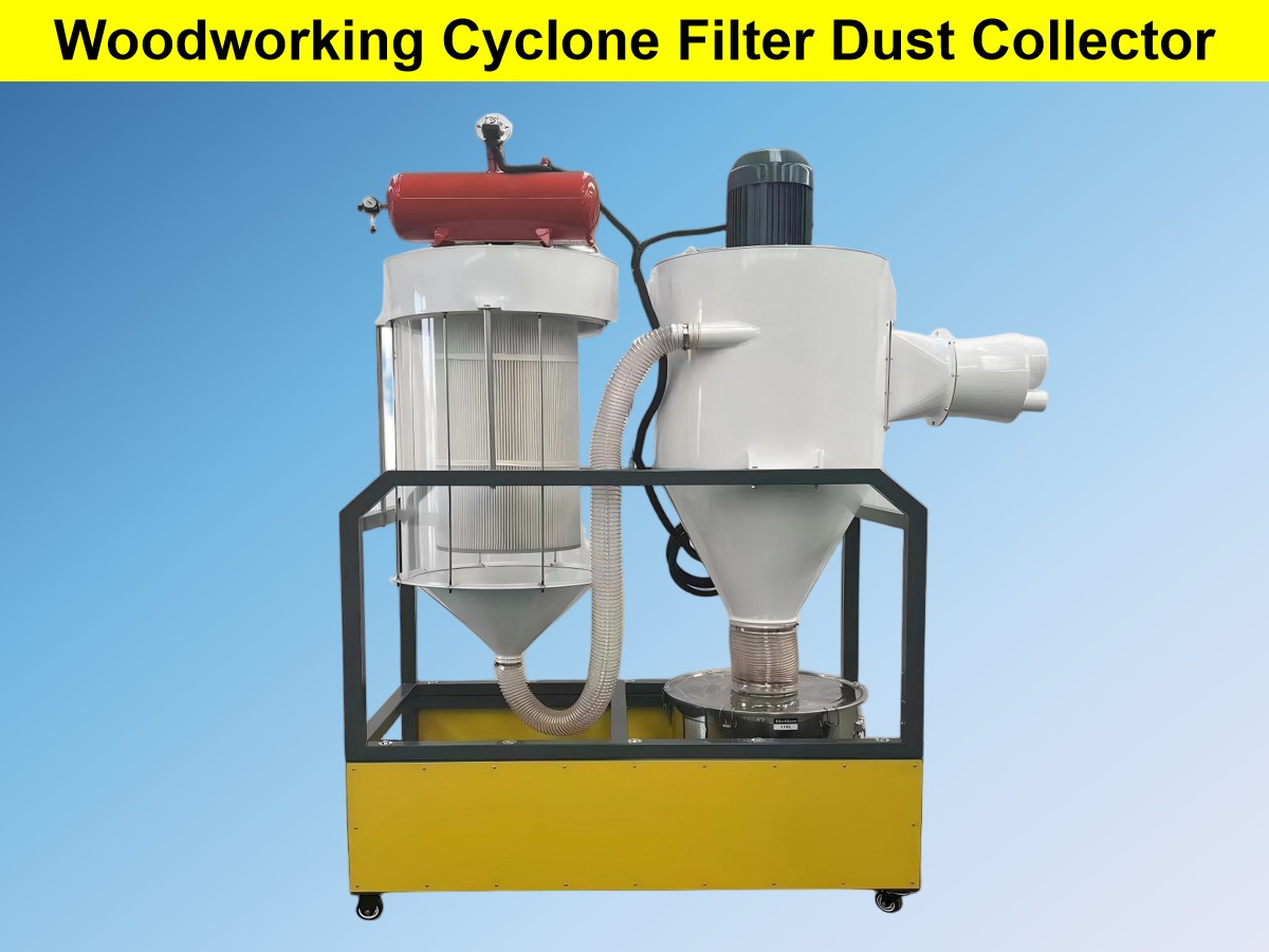 Colectorii de praf pentru prelucrarea lemnului de tip cu filtru ciclon sunt o combinație de separare cu ciclon și filtrare cu cartuş filtrant. Acestea combină avantajele colectoarelor de praf cu ciclon în manipularea prafului grosier cu concentrație mare cu caracteristicile de înaltă precizie ale colectoarelor de praf cu cartuș filtrant în filtrarea prafului fin. Proiectate special pentru distribuția largă a dimensiunii particulelor a rumegușului și a pulberii de lemn în atelierele de prelucrare a lemnului, eficiența lor de îndepărtare a prafului este mult mai mare decât cea a echipamentelor cu o singură unitate.