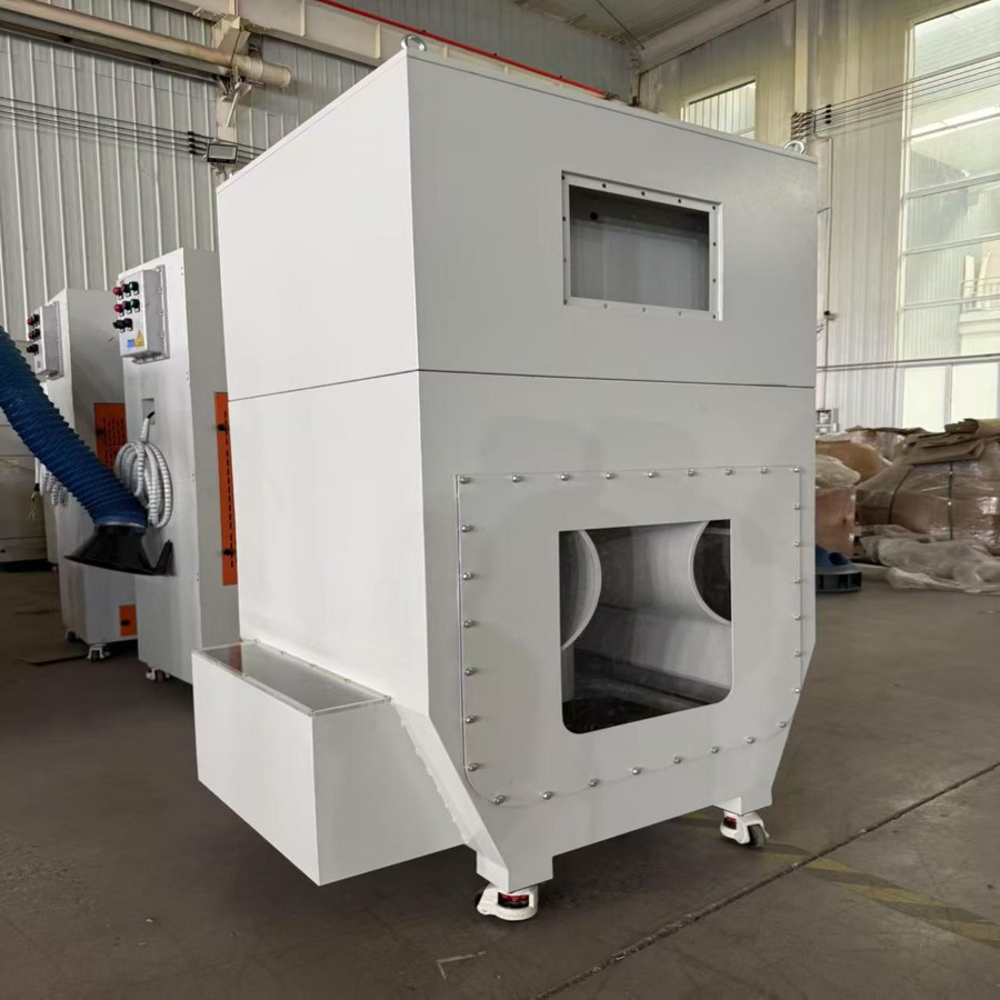Picăturile de apă care transportă praf sunt separate de fluxul de aer sub acțiunea gravitației, forța centrifugă etc. și cad în rezervorul de apă din partea de jos a filtrului umed de praf industrial.